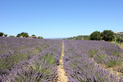 Thật mừng là chuyến hành hương 5 km đã có thành quả bước đầu. Đi được tầm 1km thì chúng tôi thấy ruộng oải hương. Tím ngắt hoa, xanh rì lá, ong vởn vơ, vo ve, và không có hàng rào. Chụp ảnh, tạo dáng, quay phim, hít hà mùi hương trong nắng. Có vô vàn ruộng oải hương, ở xa tít tắp, nhìn mà không với tới. Có vô số ruộng oải hương, ở gần, chỉ cách một tầm tay và hàng dây thép gai nhúng điện. Chúng tôi cùng đường thật rồi, không biết nên đi hay về. Bỗng như thấy đất liền, hoa tiêu reo lên "làng trên núi kìa". Quá ấn tượng, chạy lên thôi. Chạy chừng 100m thì lại đi bộ rồi bò rồi lết. Là Saignon.