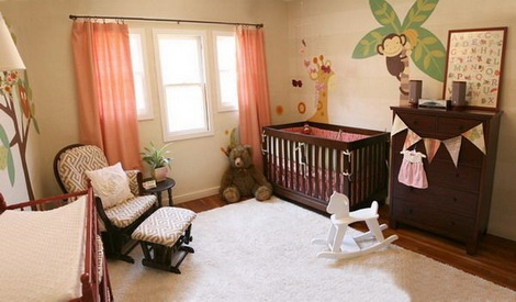 Một căn phòng được coi là hoàn hảo với trẻ em phải hội tụ đủ hai yếu tố là vui nhộn và đầy màu sắc. Ngoài những họa tiết động vật cây cối tươi vui, sắc cam của rèm cửa và bức tường màu cam đào với sắc độ rất nhẹ cũng góp phần làm cho căn phòng dưới đây trở nên sáng sủa và đáng yêu hơn.