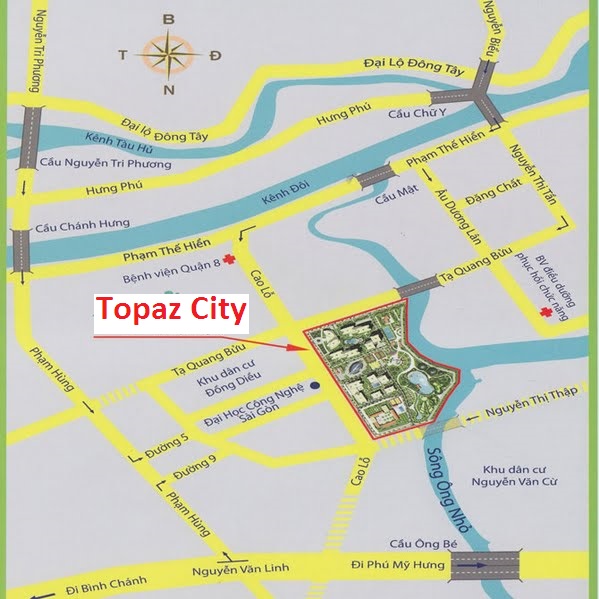 - Topaz City kết nối trực tiếp khu đô thị Phú Mỹ Hưng chưa đến 3km thông qua Đại Lộ Nguyễn Văn Linh.