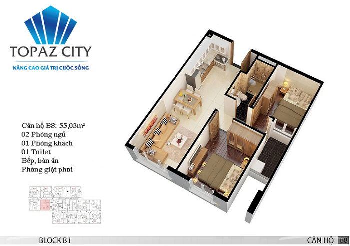 Căn hộ tại dự án Topaz City được thiết kế tinh tế với 2 - 3 phòng ngủ, diện tích da dạng đáp ứng được tất cả các nhu cầu của khách hàng.
