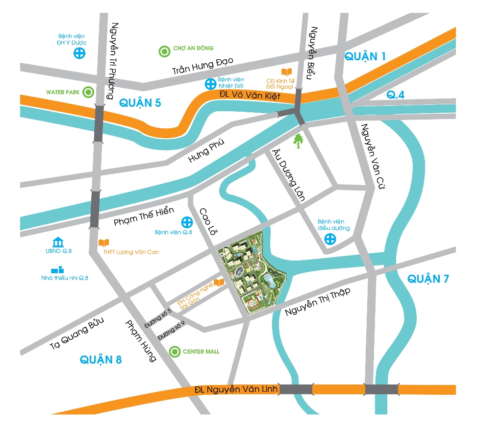 5/ Môi trường sống cao cấp: Topaz City Quận 8 nằm trong tổng thể quy hoạch công viên văn hóa - thể thao, du lịch ven sông, quy mô 15.000m2.