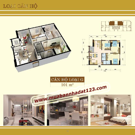 Căn hộ G (10-07) với diện tích 101 m2, gồm 3 phòng ngủ, 2wc, 1 phòng khách, bếp ăn. Nội thất ngoại nhập, giá bán hiện tại 16.5 triệu/m2.