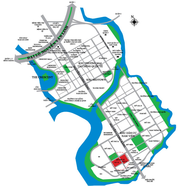 Biệt Thự Mỹ Phú 3 tọa lạc tại Khu Nam Viên, nơi có mật độ xanh lớn nhất tại đô thị Phú Mỹ Hưng, cách Biệt Thự Mỹ Phú 3 chỉ vài bước tản bộ là công viên rộng gần 9.500m2, hay trong bán kính 300m là các công viên rộng từ 10.000 - 20.000m2.