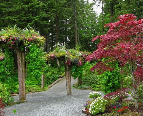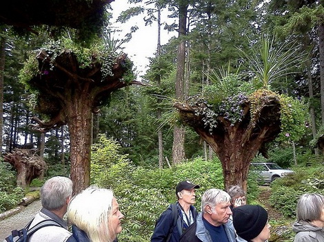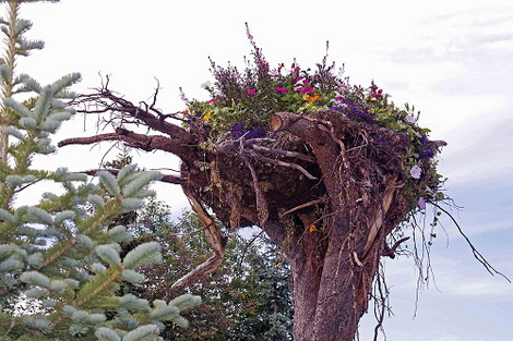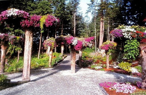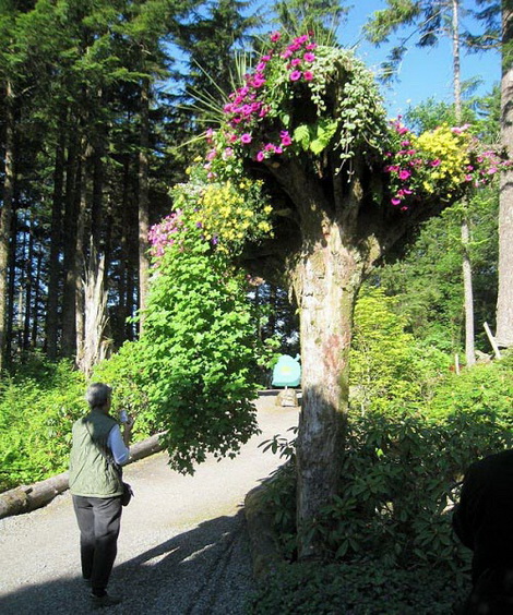 Cây lộn ngược được gọi là “Những tháp hoa” là sự kết hợp giữa loài vân sam Sitka bản địa và cây độc cần đến từ phương tây. Steve thu lượm những gốc cây bị chặt thành khúc khi chúng bị bật gốc trong vụ sạt lở đất vào năm 1984. Ông lật chúng lên trồng lại, biến chúng thành những chậu hoa tự nhiên. Ngọn cây được chôn xuống đất một vài mét, trong khi gốc rễ trở thành một cái lẵng hoa để các loài hoa như thu hải đường, vân anh, dã yên thảo mọc lên và đua nhau khoe sắc.