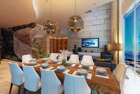 Nhà được ghép lại bởi 5 căn hộ trên tầng 27, thuộc tòa tháp thứ 6 của dự án, có thể nhìn cảnh đẹp Sài Gòn ở đủ mọi góc độ. Không chỉ được thiết kế tỉ mỉ và lắp nội thất xa xỉ, căn biệt thự trên cao còn được gia chủ đặt hàng lập trình phần mềm riêng. Chi phí lắp đặt hệ thống điều khiển, giám sát thông minh 70.000 USD.