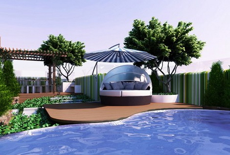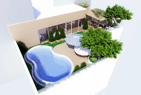 Hồ bơi lộ thiên trên tầng áp mái của căn penthouse 900 m2. Đây cũng là điểm nhấn thứ hai của căn biệt thự trên không này, bên cạnh mảnh vườn treo rợp bóng xanh.