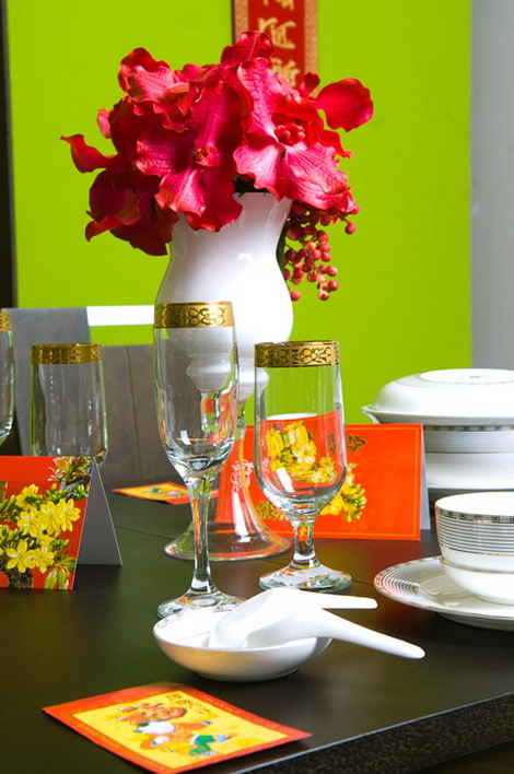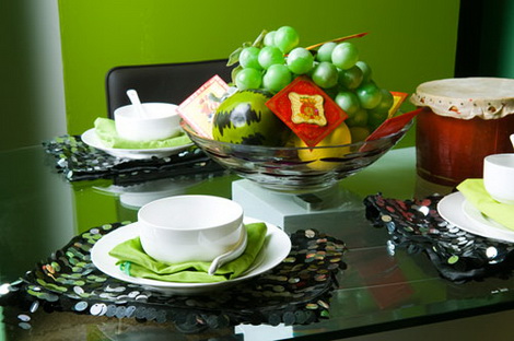 Những chiếc bánh chưng, bánh tét, dưa hấu bạn nên lau một chút dầu ăn bên ngoài cho sáng rồi dán phong bao đỏ lên trên trước khi bày biện. Không cần cầu kỳ, một chút sắc đỏ, hoa lá, bánh trái cũng đủ để tạo nên không khí Tết màu sắc và đầm ấm.