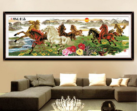 Tranh treo tường hình ngựa là cách dễ dàng và phổ biến nhất để mang linh vật của năm vào nhà.