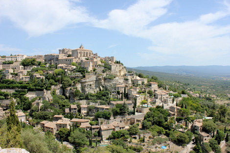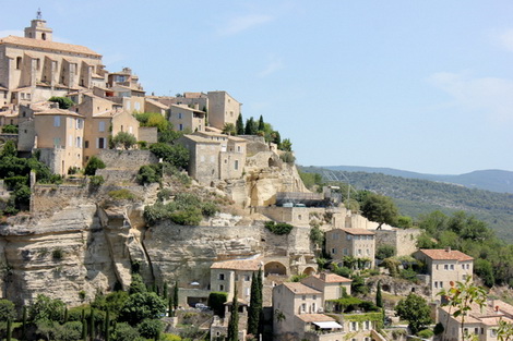 Chà, nếu Saignon đẹp thì Gordes thế nào? Gordes đẹp và ấn tượng. Khi bắt xe bus tới Gordes chúng tôi đã được ngắm nhìn nó từ bên dưới. Cứ tưởng tượng một thành phố hoàn toàn bằng đá cheo leo ở tít trên cao, lơ lửng giống như lâu đài giữa trời, giống ngôi nhà của thượng đế trong truyện tranh Dragon Balls. Thành phố nhỏ xinh ấy, nhà cửa bằng đá ngà, hoa nở khắp nơi, cái gì cũng xinh, cái gì cũng đẹp, mà kể ra lại không thấy có gì. Trong cái không có gì ấy là một cái thật kì vĩ. Cứ nghĩ họ đã leo tít lên cao như thế, đục đá làm nhà, sống yên bình thảnh thơi, không đáng kinh ngạc sao? Chỉ có điều lên Gordes khó, mà từ đó sang làng khác cũng khó. Đi hết Gordes chân mệt nhoài, thì tôi tham lam đòi qua cả Roussillon nữa, nên đành gọi taxi đi.