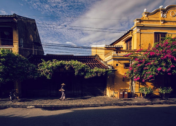 Đến Hội An vào lúc sáng sớm, du khách sẽ cảm nhận được một khung cảnh thanh bình với tiết trong lành, những ngôi nhà nhuốm màu thời gian vẫn đóng cửa im im. Âm thanh duy nhất trên đường phố lúc này là tiếng chổi quét đường của các o, các mệ (bà).
