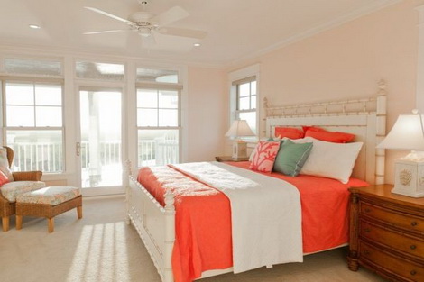 Tường nhà và chăn gối màu cam đào mang đến sự tự do, phóng khoáng và trẻ trung.