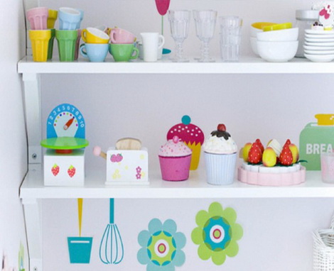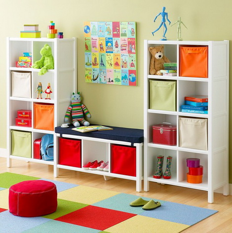 Giá sách không chỉ để sách mà còn bày đồ chơi cho bé.