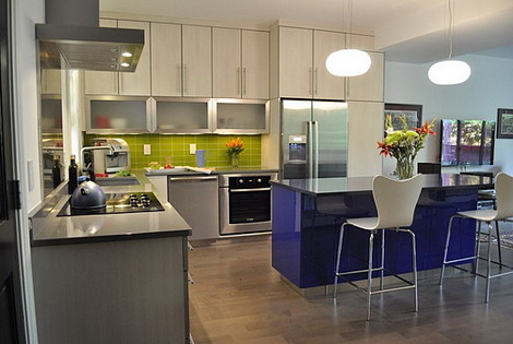 Bộ bàn ăn màu xanh cô-ban thanh lịch như một hòn đảo nhỏ nổi lên giữa căn bếp với nội thất đa phần là thép không gỉ, cộng thêm sự nổi bật của màu vàng chanh chính là câu trả lời thuyết phục cho những ai đang thắc mắc: “Liệu 2 gam màu này khi kết hợp với nhau có mang lại cho không gian sống một cái nhìn hiện đại?”.