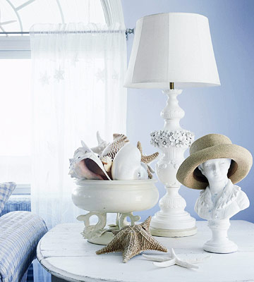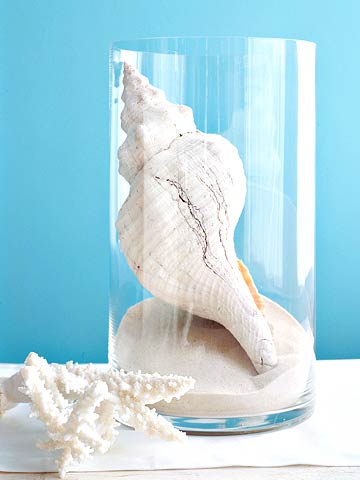 Không chỉ tập trung thay đổi màu sắc trong nhà, làm cho không gian mát mắt hơn, nhẹ nhàng và thoải mái, có thể làm dịu cái nóng ngột ngạt của nắng hè mà còn tìm cách trang trí cho không gian nhà bạn tràn ngập hương vị của đại dương, của biển xanh, của tâm hồn tươi trẻ, đáng yêu, thèm sống và thèm được rong chơi trên những bãi biển xa xăm. Tận dụng những sản phẩm làm từ vỏ ốc, vỏ sò, san hô, sao biển… một cách thông minh, tinh tế để nhà thêm đẹp bằng nhiều cách dưới đây nhé!