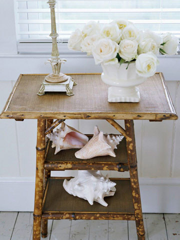 Đôi khi chỉ là sắp xếp những vỏ ốc lớn trên một chiếc bàn bằng tre thân thiện với môi trường lại tạo ra cái nhìn thanh lịch, phù hợp với hương vị tự nhiên của những resort ở các bãi biển.