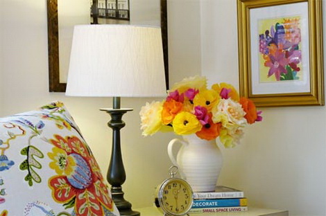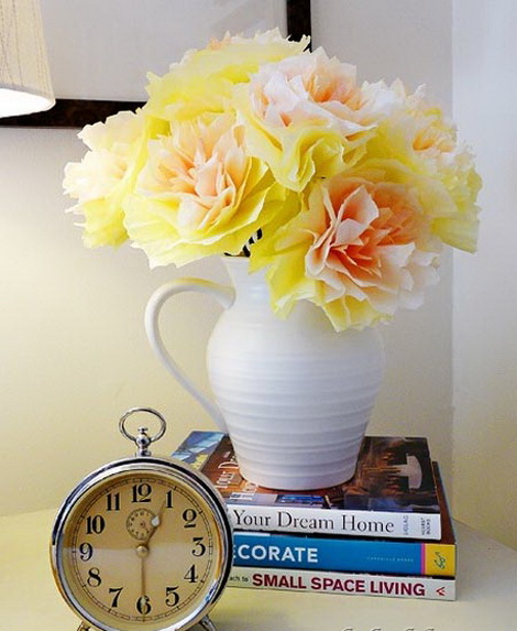 Trong không gian phòng ngủ, bạn nên ít để hoa tươi vì sẽ gây ra những cơn khó ngủ vào ban đêm. Tuy nhiên, để phòng ngủ đẹp và đem lại cảm giác yêu đời lại không thể thiếu những bông hoa rực rỡ sắc màu. Nhiều mẹ bé đã lựa chọn những lọ hoa bằng nhựa, bằng giấy hoặc bằng lụa. Bạn có thể tự mình làm một lọ hoa như vậy để đón chào ngày 20-10.