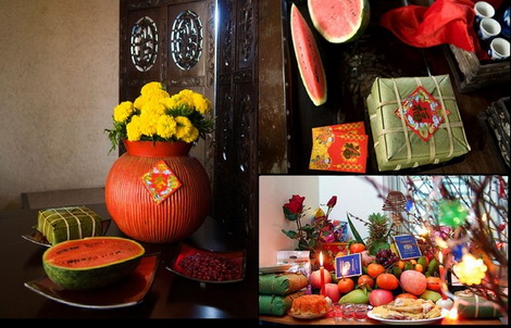 Bàn thờ Tết không thể thiếu được mâm ngũ quả
