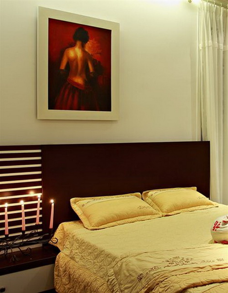 Để không gian phòng ngủ thêm lãng mạn bạn nên treo những bức tranh trang trí với những cảnh tượng lãng mạn biểu tượng cho tình yêu như kiểu tranh phong cảnh, tranh đôi lứa hoặc những bức tranh rực rỡ.