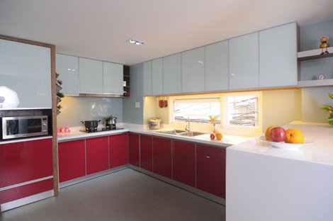Thiết kể bếp màu sắc nổi tạo sự vui vẻ.