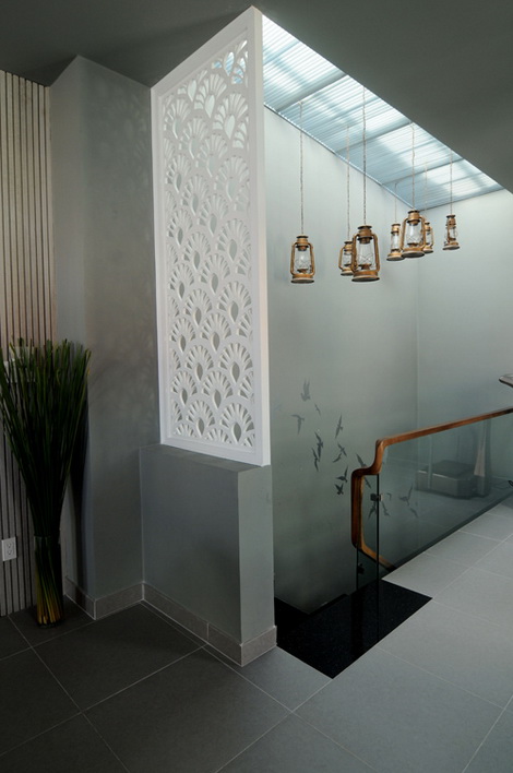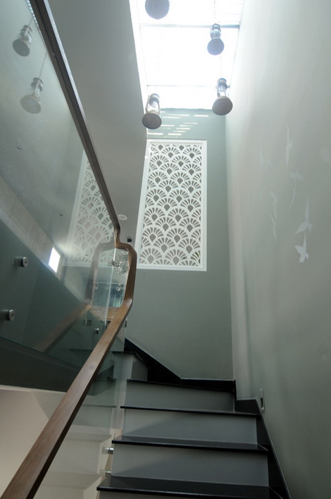 Cầu thang lấy ánh sáng từ trên nóc giếng trời.