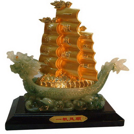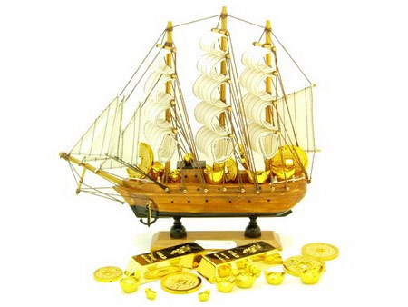 Trong phong thủy, thuyền buồm lộng gió chở đầy vàng đến cho bạn được xem là thuận lợi nhất. Do đó, bạn có thể mua thuyền buồm rồi chất đầy trong lòng thuyền những nén vàng và tiền xu cổ Trung Quốc, sau đó đặt vào những vị trí như đã nêu trên.