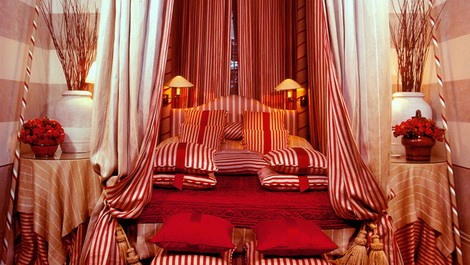 Với phòng ngủ, một bô chăn ga màu đỏ, một chút ánh sáng đỏ mờ ảo cũng đã làm cho không gian trở nên lãng mạn, tràn đầy sức xuân mới.