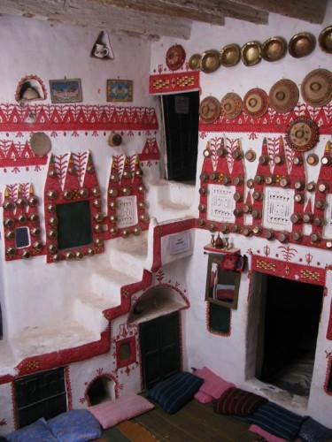 Để tránh những tác động từ nhiệt độ nóng bên ngoài, các ngôi nhà còn được thiết kế với các phòng chính không có cửa sổ. Chúng được sơn trắng toàn bộ và sử dụng gương để tăng lượng ánh sáng trong phòng. Bếp cũng được đặt trên mái nhà để tránh nhiệt và khói.