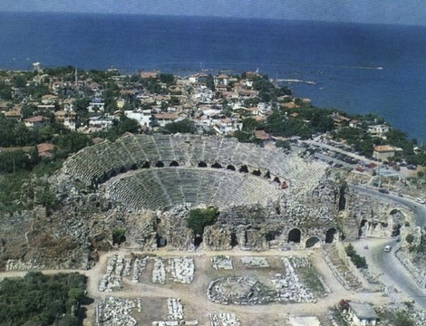 Di tích nhà hát Side vẫn đang ở trong tình trạng khá tốt, bao gồm một ngôi chùa, cổng thành, và một nhà hát lớn có sức chứa khoảng 15.000 người. Side là một thị trấn nghỉ mát nổi tiếng nằm trên bờ biển Địa Trung Hải, phía nam Thổ Nhĩ Kỳ. Thành phố này được cư dân Hy Lạp thành lập vào thế kỷ thứ 7 (trước Công nguyên), và là một trong những trung tâm thương mại quan trọng trong khu vực. Vào năm 25 (trước Công nguyên), Side sát nhập vào tỉnh Galatia, và ngày càng phát triển nhờ kinh doanh dầu ô liu và buôn bán nô lệ. Nhà hát đã tồn tại như một điểm văn hóa chính ở thành phố trong suốt nhiều năm, và thu hút nhiều người đam mê thưởng thức nghệ thuật từ khắp nơi trên khu vực Địa Trung Hải.