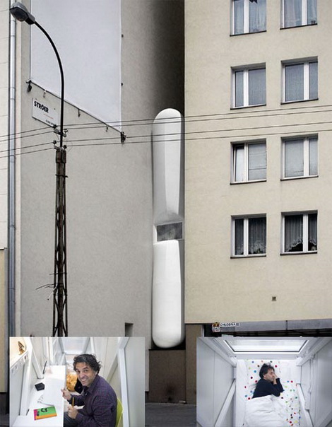Chiều rộng là 92cm, chiều dài là 125cm, nhưng kiến trúc sư Jakub Szczesny đã biến diện tích này thành một căn nhà tuyệt vời cho 1 người ở với đầy đủ các chức năng như phòng ngủ, phòng khách, nơi làm việc…