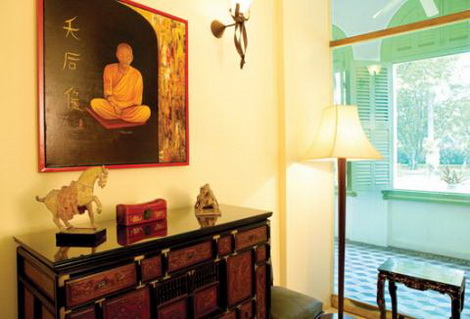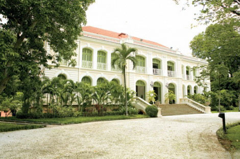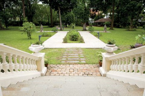 Bước qua cánh cổng cao là chúng ta như đi lạc vào một khu vườn nhiệt đới tươi mát với thảm cỏ và bóng cây. Những bức tường lớn ngăn cách giữ đã lại sự ồn ào và náo nhiệt bên ngoài để cho bên trong này luôn có được một không gian tĩnh tại và trang trọng. Và phần khám phá còn lại thuộc về không gian nội thất của dinh thự, vì thế, càng trở nên nhiều hấp dẫn.