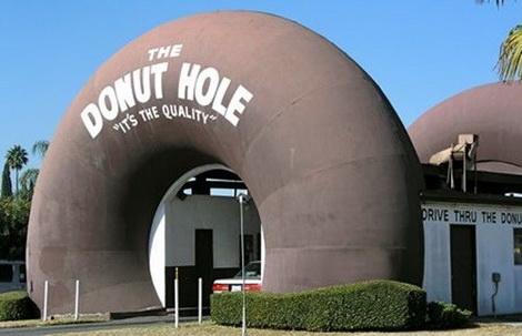 La Puente, bang California là nơi có một trong những hiệu bánh độc đáo nhất thế giới. Cửa hàng hình 2 chiếc bánh vòng này chuyên bán các loại bánh vòng từ năm 1968.