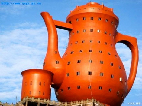 Huyện Meitan thuộc tỉnh Quý Châu, Trung Quốc nổi tiếng là nơi sản xuất trà xanh lớn nhất tại khu vực. Tòa nhà hình ấm và chén trà được xây dựng tại đây để biểu trưng cho ngành công nghiệp phát triển mạnh mẽ này. Bên trong bảo tàng, du khách có thể tìm thấy tất cả mọi thứ liên quan đến trà.