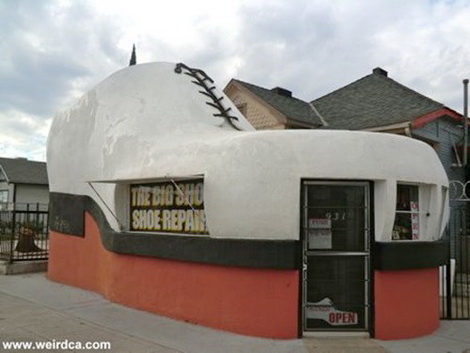 Trên thế giới đã có nhiều tòa nhà hình chiếc giày, nhưng chỉ tại Bakersfield, California, Mỹ bạn mới có thể sửa giày bên trong một chiếc giày. Cửa hàng sửa giày này được xây vào năm 1947 với chiều dài hơn 9m. Điểm đặc biệt là trên mái tòa nhà có dây giày được làm từ dây thừng dài 15m.
