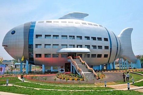 Tòa nhà 4 tầng hình con cá này được xây dựng vào năm 2012 để làm văn phòng phát triển thủy sản quốc gia Ấn Độ.