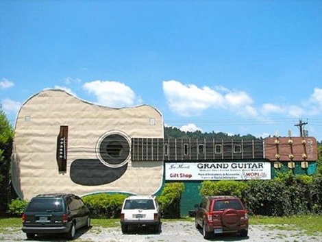 Cửa hàng Grand Guitar tại Bristol, Tennessee đặt tại khu vực nổi tiếng với dòng nhạc đồng quê và nhạc blue. Điểm đặc biệt là cửa hàng được xây dưới hình dạng một cây guitar dài hơn 20m và cũng được dùng như một bảo tàng trưng bày các nhạc cụ.