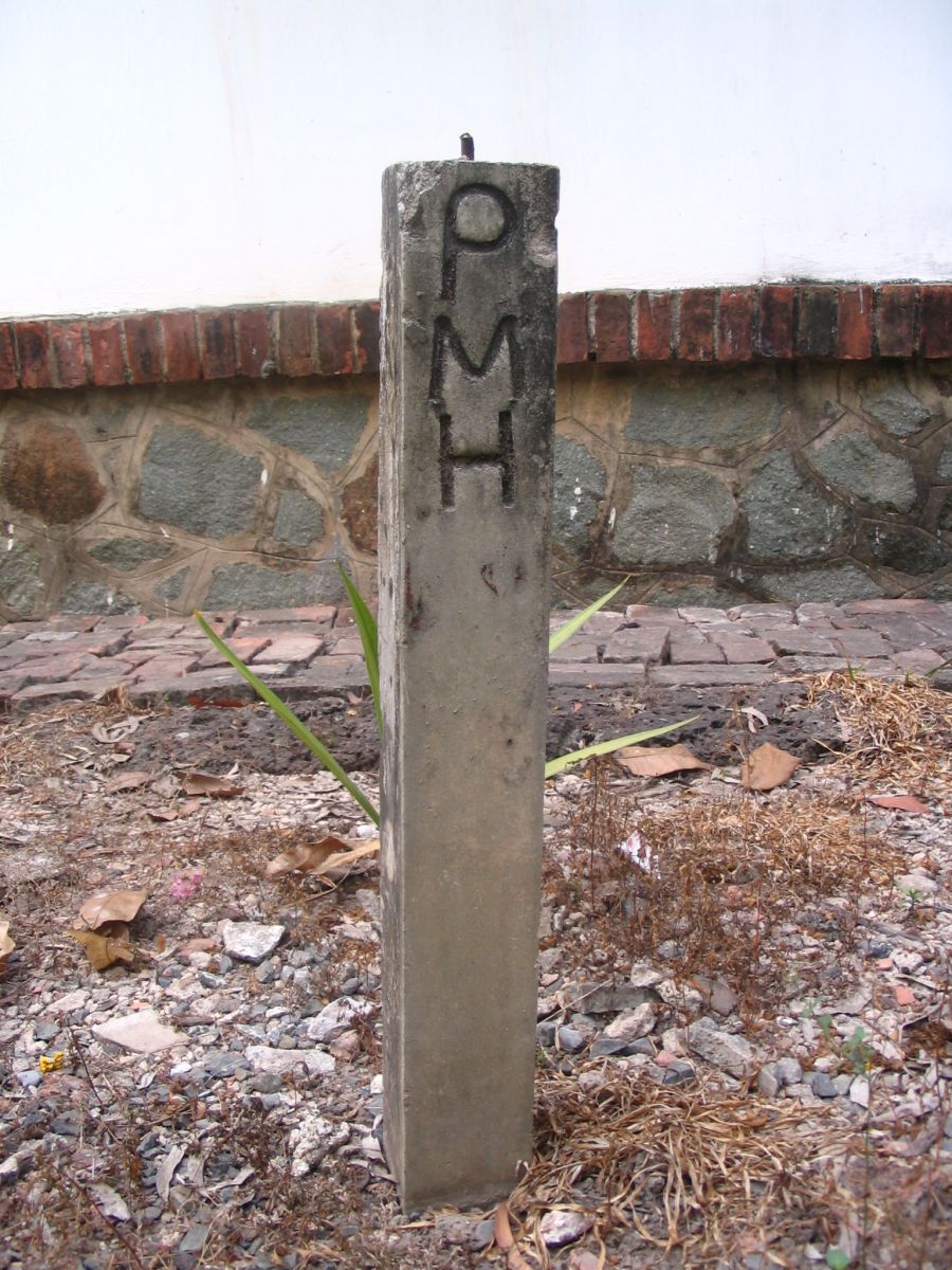 Cột mốc do công ty Phú Mỹ Hưng cắm ở sát hiên nhà ông Phú