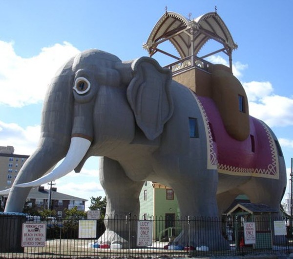 4. Chú voi có tên Lucy này được xây dựng vào năm 1881 tại bờ biển New Jersey. Ngôi nhà đã ngốn tới hơn 38 nghìn USD và đã được sử dụng dưới nhiều mục đích khác nhau như nhà riêng, văn phòng và nhà hàng.