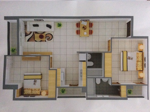 - Diện tích từ 62.3 – 83 m2, gồm 2 PN – 2 WC – 2 Ban công