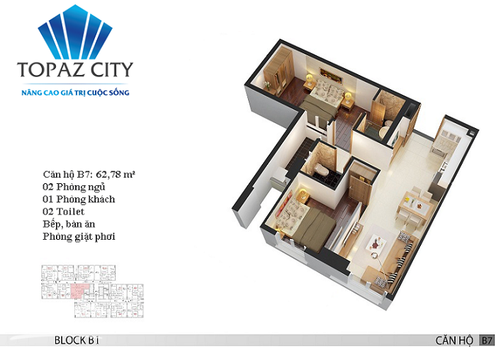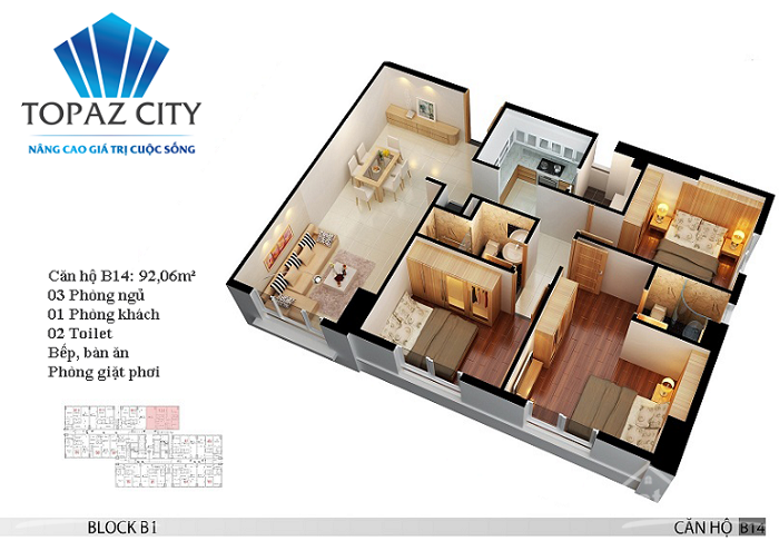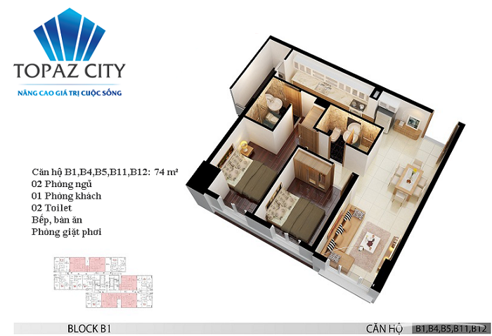 Căn hộ tại dự án Topaz City được thiết kế tinh tế với 2 - 3 phòng ngủ, diện tích da dạng đáp ứng được tất cả các nhu cầu của khách hàng.