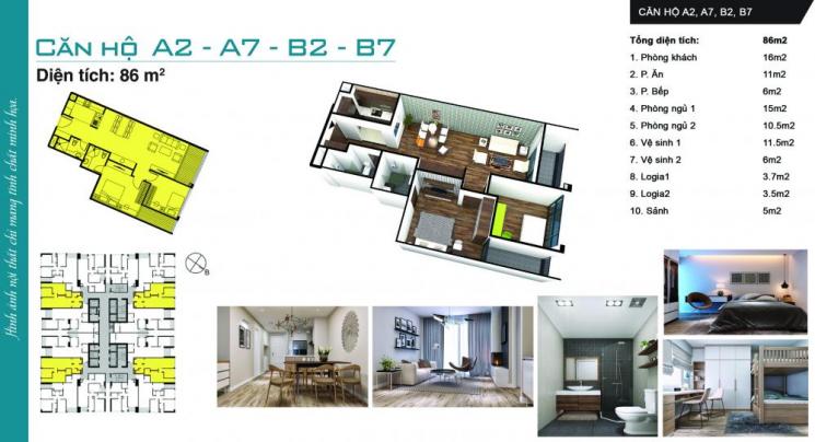 Loại 2PN: 76 và 86 m2.