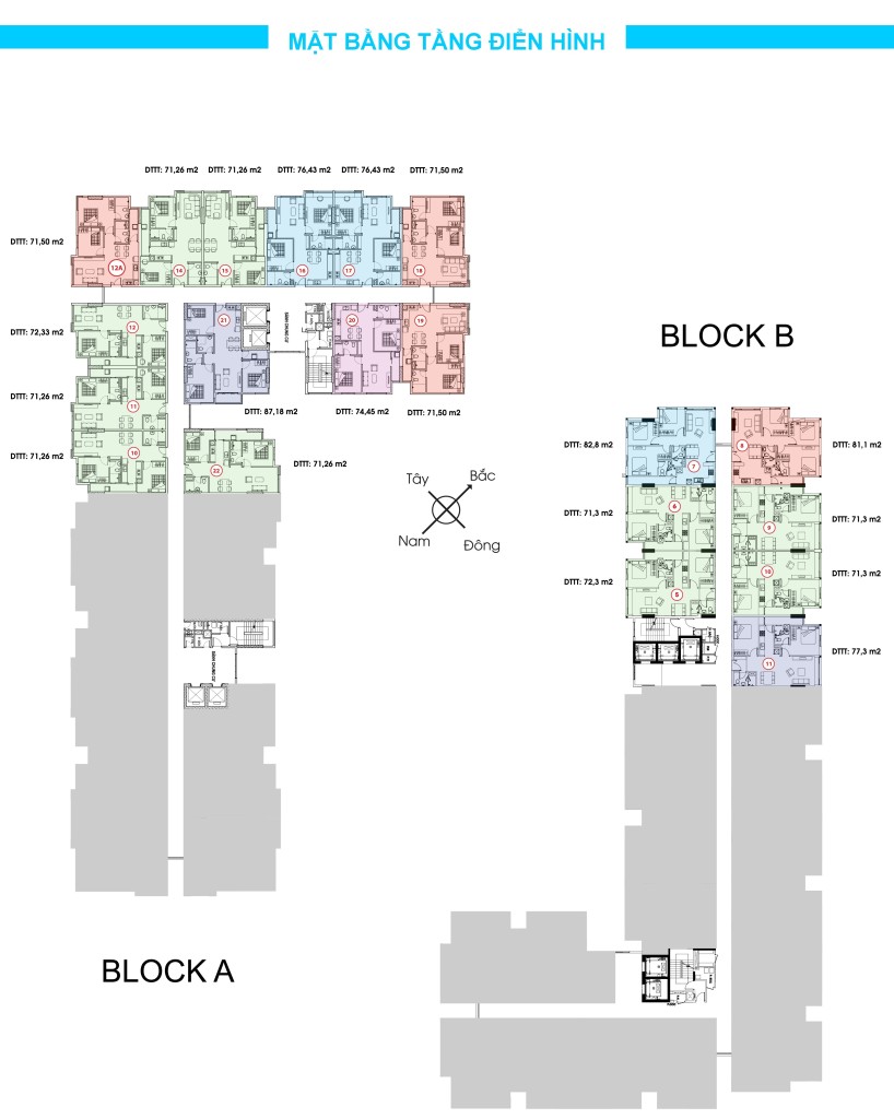 Xây dựng 2 Block cao 20 - 22 tầng, gồm 749 căn hộ có diện tích từ 65.26 -> 92.10 m2