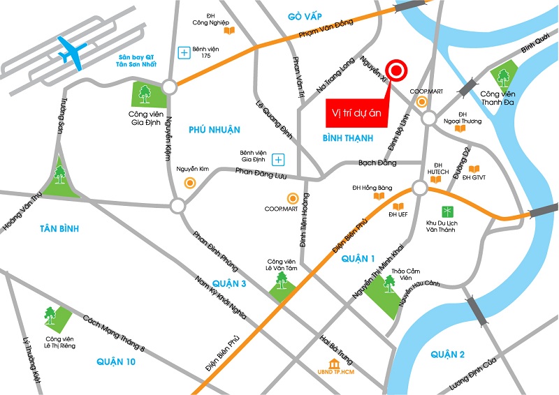 Saigonres Plaza sở hữu vị trí vàng trung tâm Quận Bình Thạnh, tiếp giáp với Quận Phú Nhuận và cách Quận 1 chỉ khoảng 2km, kết nối với đại lộ Phạm Văn Đồng đi sân bay Quốc tế Tân Sơn Nhất chỉ khoảng 10 phút.