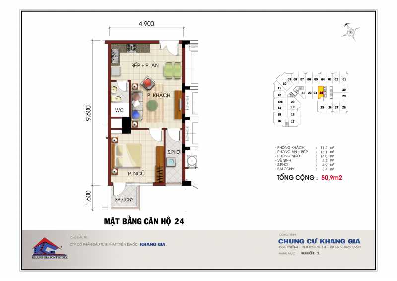 Bán căn hộ Khang Gia - Gò Vấp, diện tích: 44m2-107m2, 1-3 phòng ngủ