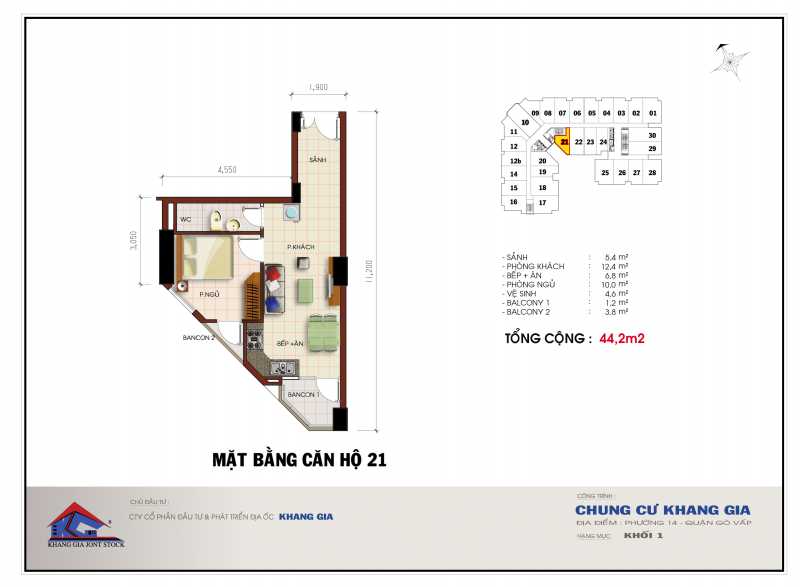 - Diện tích sử dụng:44m²