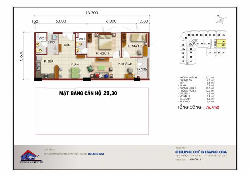 - Diện tích xây dựng