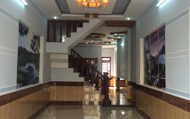Nhà có 5 tầng chắc chắn thiết kế cầu thang giữa nên không gian rộng. Tầng 1 có 1 phòng khách, 1 bếp, 1 vệ sinh. Tầng 2, 3, 4 có 2 phòng ngủ, 1 phòng vệ sinh. Tầng 5 có 1 phòng thờ và sân phơi.