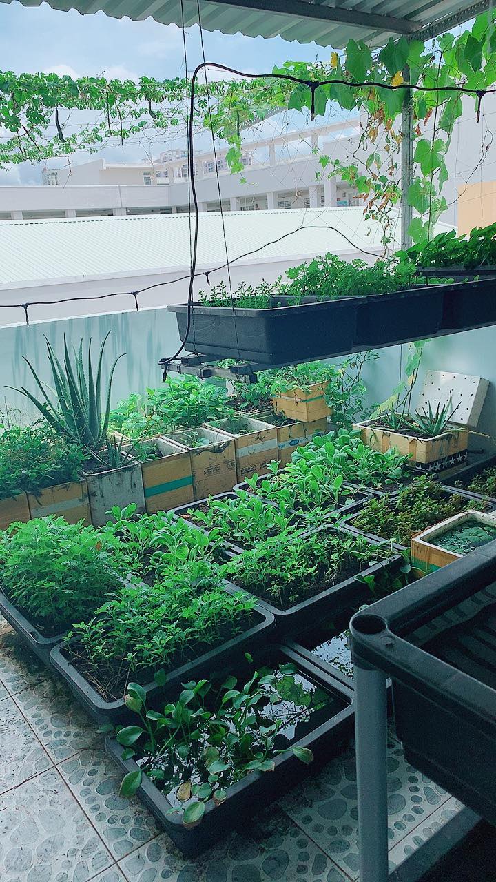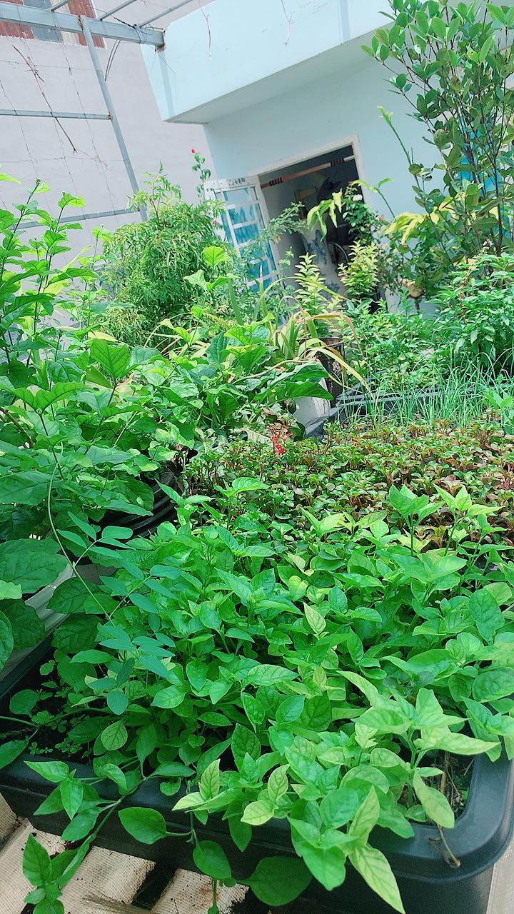 - Không gian giữa là cây xanh và cây cảnh, cá cảnh.
