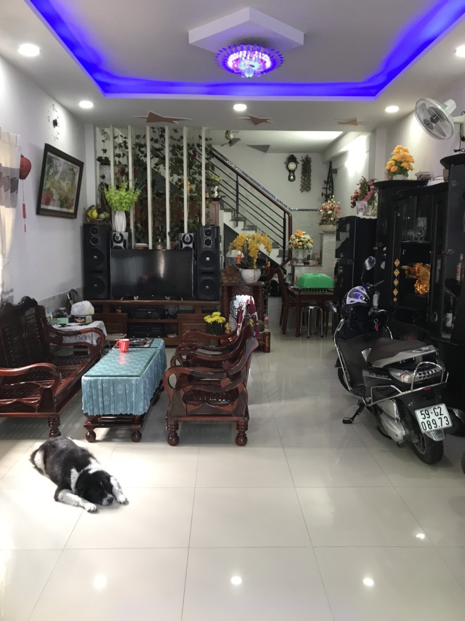- Nhà 1 trệt 1 lầu với diện tích 103m2, kết cấu gồm 4 phòng ngủ, 1 phòng khách, 1 sân thượng, 3 toilet… Hẻm xe hơi 5m thông thoáng, cao ráo không ngập nước.