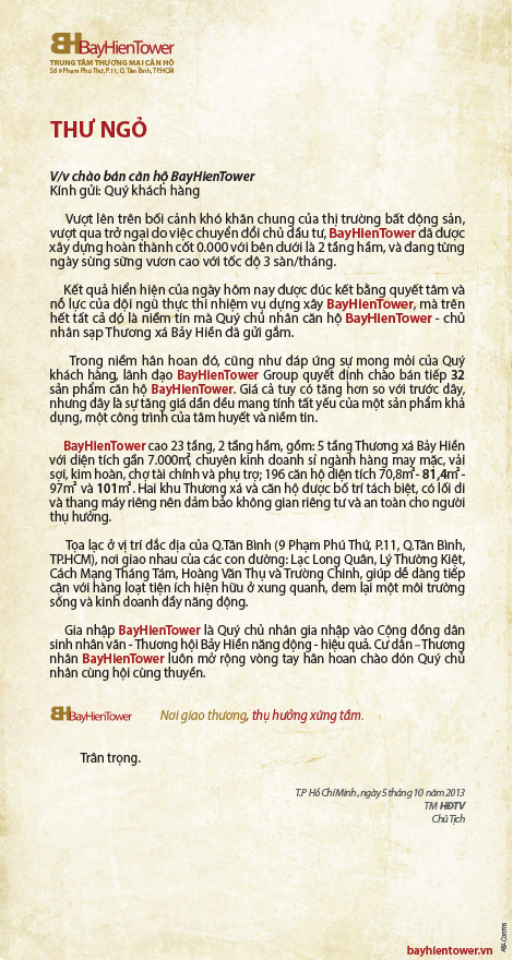 Lưu luyến chia tay trung thu 2013 Các hoạt động của nhacunhamoi.com tại "Tuần Lễ Văn Hóa - Du Lịch tỉnh Bến Tre lần 1 - 2013 Bầu Đức: ‘Bất động sản Việt không có dấu hiệu phục hồi’ Savills công bố mở rộng hoạt động tại thị trường Đông Nam Á Thị trường bất động sản đang sôi động trở lại Khu chợ sỉ trong Bảy Hiền Tower Hoàng Anh Gia Lai bán dự án để giảm nợ vay Dreamland City - Không gian xanh giữa lòng đô thị hiện đại The EverRich 3: Nơi an cư lý tưởng - Chốn phú quý trường tồn BayHienTower - Nơi giao thương, thụ hưởng xứng tầm Nơi an cư của các chuyên gia – Nhu cầu bức bách Ngày hội tuyển dụng của Phúc Khang 600 khách hàng ''tranh mua'' đất Bình Dương Dự án ''sạch'' tại Bình Dương đắt khách hàng phố núi Danh Khôi Á Châu phân phối độc quyền dự án Phú Thịnh Riverside