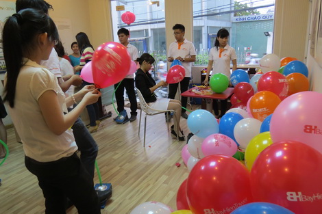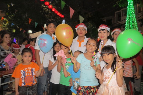 Cũng trong buổi chiều, đội ngũ chuyên viên, công nhân viên thuộc Bảy Hiền Group tấp nập chuẩn bị với hàng ngàn chiếc bong bóng Merry Christmas được thổi căng phồng, chờ trao tay cho những bạn nhỏ mến yêu.